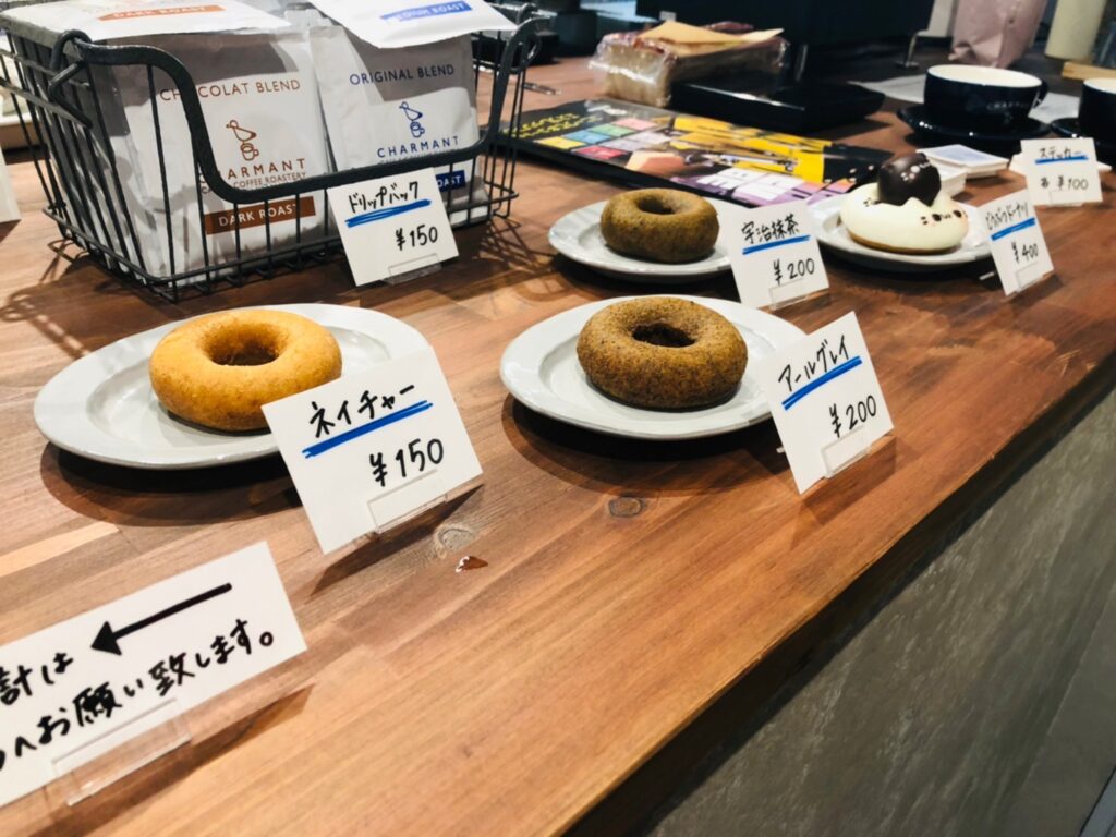 お店では、コーヒーの他ドーナツなども提供されています。